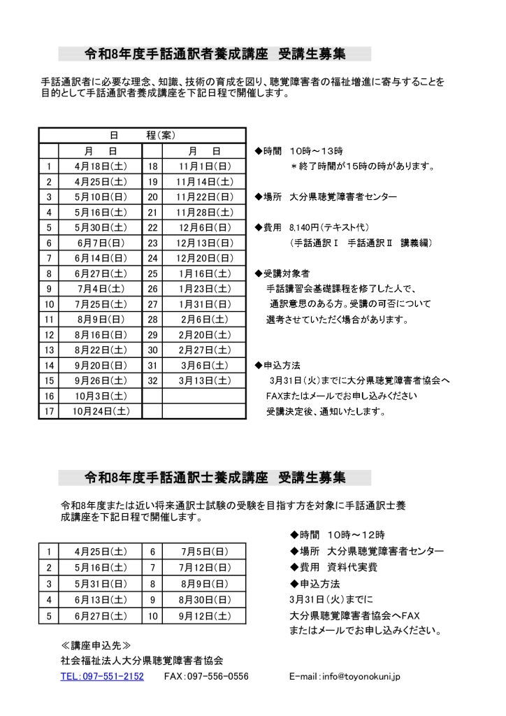 令和8年度大分市手話講習会開催のご案内
